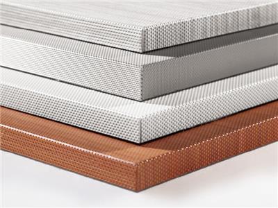 超微孔板先进技术,特殊工艺,双层复合蜂窝结构,双层不同孔径穿孔形成宽频吸声效果,降噪系数高可达0.7,符合建筑隔声设计规范GB50118-2010